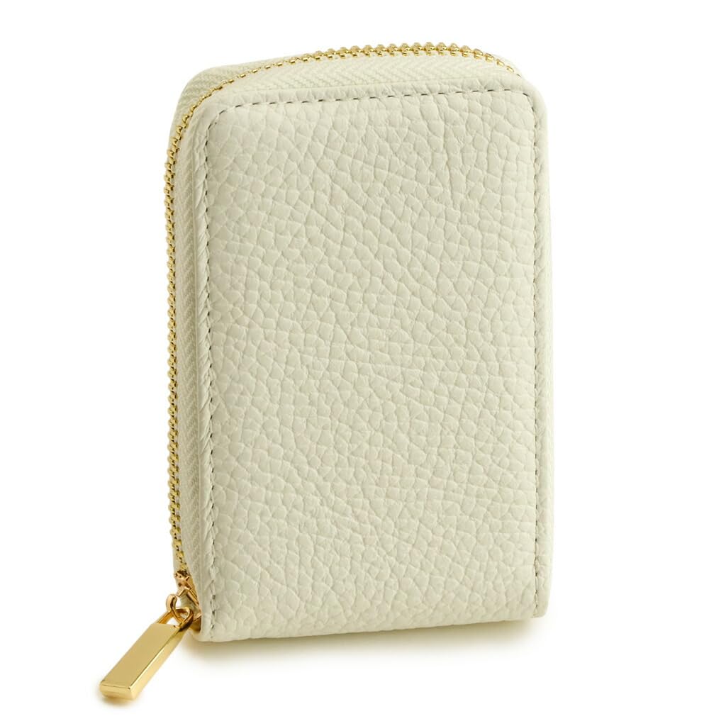 Pragma Women's Bellows Card Case, Vertical, Genuine Leather, Holds Many Cards, Italian Leather Wallet with Round Zipper (Ivory)