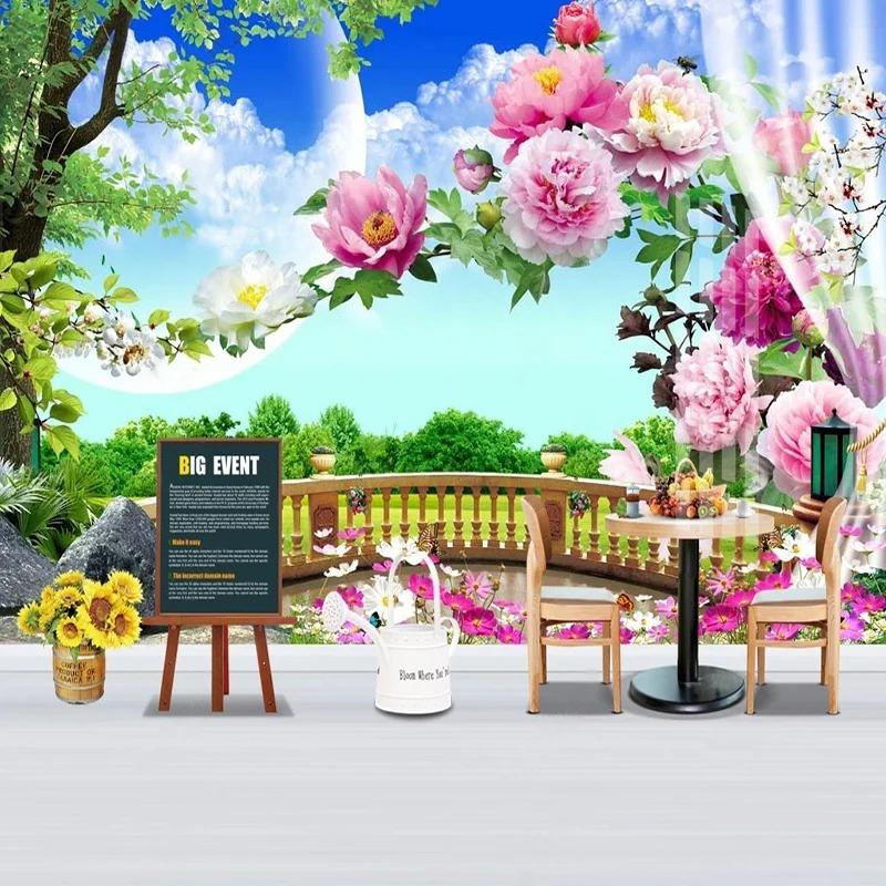 European Garden Mural Balcony Grass Rose Scenery Wall Painting Bedroom Living Room Home Decor 3d Wallpaper Fresco