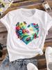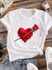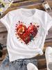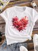 (Asian Size) trend love heart flower T-shirts Printed Clothing Lady o-neck Short Sleeve Female Top Casual T Shirt Fashion Women Graphic Tee