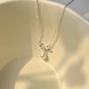 Small and fresh temperament S925 sterling silver bow bead necklace female sweet pink diamond collarbone chain