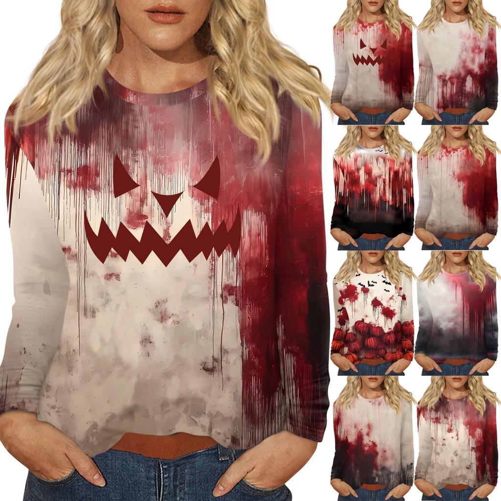 Haut Pull-over Décontracté Mode Femme Imprimé Halloween Col Rond Manches Longues
