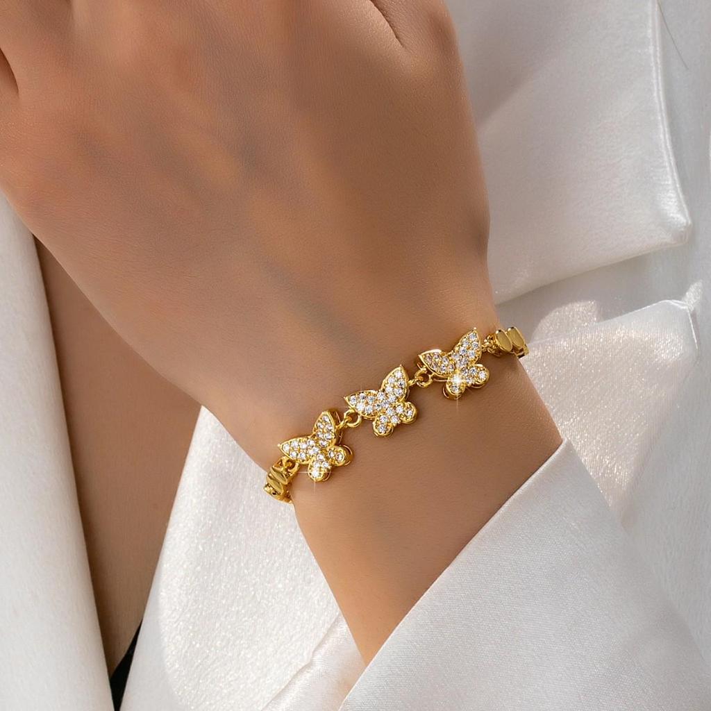 Diamond-Encrusted Butterfly Pendant Gold-Plated Bracelet - Luxury Zircon Design