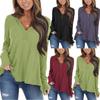 Autumn New Solid Color V-Neck Long-Sleeved Top Button Ladies Sweatshirt