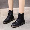 מגפי מרטין נשים חדשות סתיו וחורף רגל קצרה סוליית עבה מגפי שרוכים בתוספת פליסה חורף מרטין מגפי