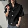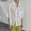 INCERUN Vintage Men Oversized Half Sleeve Shirts Summer Casual Solid Tops