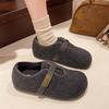 Gray fluffy shoes for women to wear in winter, new Korean version of woolen single shoes for women, flat-soled Doudou shoes, velvet thermal cotton sh