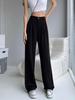 Plus Size Women's Black Drape Wide-Leg Trousers - Summer Casual Fit for Pear-Shaped Bodies