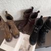 European haute couture fashion boots 2025 retro double buckle thick-soled velvet Martin boots locomotive knight boots casual short boots women