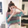 Maglione pullover a righe Versione coreana primaverile Camicetta cava Camicia femminile con maniche a cinque punte larghe a contrasto di colore a contrasto Top fresco e traspirante