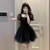 Women's V-neck Pleated Dress French Niche Tea Break Skirt Waist Slimming Dress Small Dress Puffy Sleeves