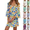 Women's Casual Fashion Floral Print V-Neck Loose 3/4 Sleeve Dress