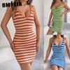 Abito Casual da Donna Colorato a Maglia a Righe Schiena Nuda Primavera Estate Pacchetto Vacanza Fianchi S-L