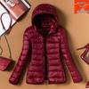 This chic women's lightweight hooded slim down jacket is the perfect addition to your autumn and winter wardrobe. Designed with a contemporary flair, this fashionable short outerwear piece ensures both style and comfort. Filled with premium duck down, it offers warmth without excess bulk, making it ideal for cooler months. The jacket is crafted from high-quality polyester material, ensuring durability and a sleek finish. Its slim fit enhances your silhouette, while the long sleeves deliver extra coverage. The jacket is also adorned with practical pockets, offering both function and a touch of elegance. Tailored for females, it addresses plus-size fashion needs without compromising on style.
