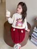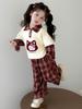 Girls' Plaid Pants Set - Spring/Autumn 2025 Collection - Trendy Apple Design Outfit