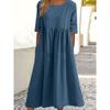 ეს მაღალი ხარისხის ბამბის კაბა გთავაზობთ ჩვეულებრივ და თავისუფალ მორგებას, რაც უზრუნველყოფს კომფორტს რბილი და მსუბუქი ქსოვილით. ერთიანი ფერის დიზაინი ასხივებს ელეგანტურობას და სტილს, რაც მას მრავალმხრივ ნამუშევრად აქცევს სხვადასხვა შემთხვევებისთვის. იქნება ეს ოფისისთვის, ყოველდღიური ჩაცმისთვის, შოპინგისთვის, შვებულებისთვის თუ წვეულებისთვის, ეს ზაფხულის ჩვეულებრივი მოკლე სახელოიანი კაბა ჯიბეებითა და ნაკეცებით შესანიშნავი არჩევანია..