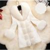ქალის სქელი ქურთუკი საშუალო სიგრძის შემოდგომის ზამთარი თბილი, ერთიანი ფერის წელის რეტრაქცია მაღალი ხარისხის ყალბი Fox ბეწვის ქურთუკი ქალის ქურთუკები