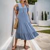 Summer A Line Solid Color Mid Length Stand Up Collar Casual Dresses