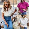 Women's Fashion Solid Color Round Neck Lace Short Sleeved Casual Button Up Shirt Top