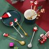 Kids Flatware Christmas Design Stainless Steel Silicone Long Handle Cute Dessert Spoons with Forks
