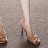 Open-toed word with beautiful sandals women's summer wear temperament high-heeled slippers cool slippers
