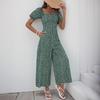 Women's Square Neck Puff Sleeve Wide Leg Printed Jumpsuit
