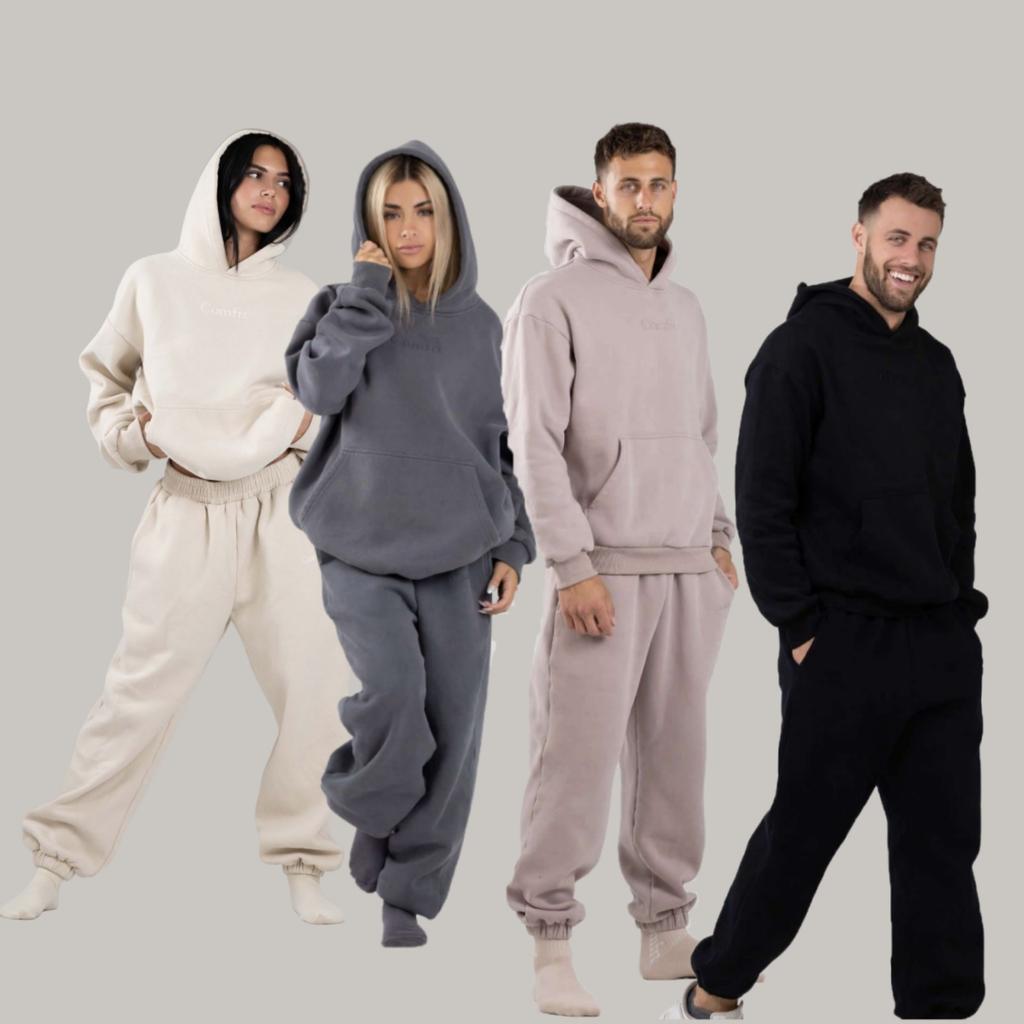 Comfrt Solid Color Embroidery Fleece Oversize Couple Hoodie Casual Loose Sweatpants Set