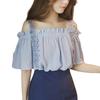 Yours Ruffle Voluminous Blouse BFXU1801 Medium Blue Off-the-Shoulder Women's