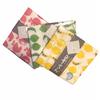 A set of three differently designed oshibori towels and a carrying case