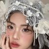 White Bride Headdress Lace Floral Wedding Headwear Romantic Bridal Hat Banquet