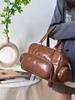 Top Layer Cowhide Patchwork Bowling Bag Niche Retro Patch Briefcase Large Capacity Boston Bag