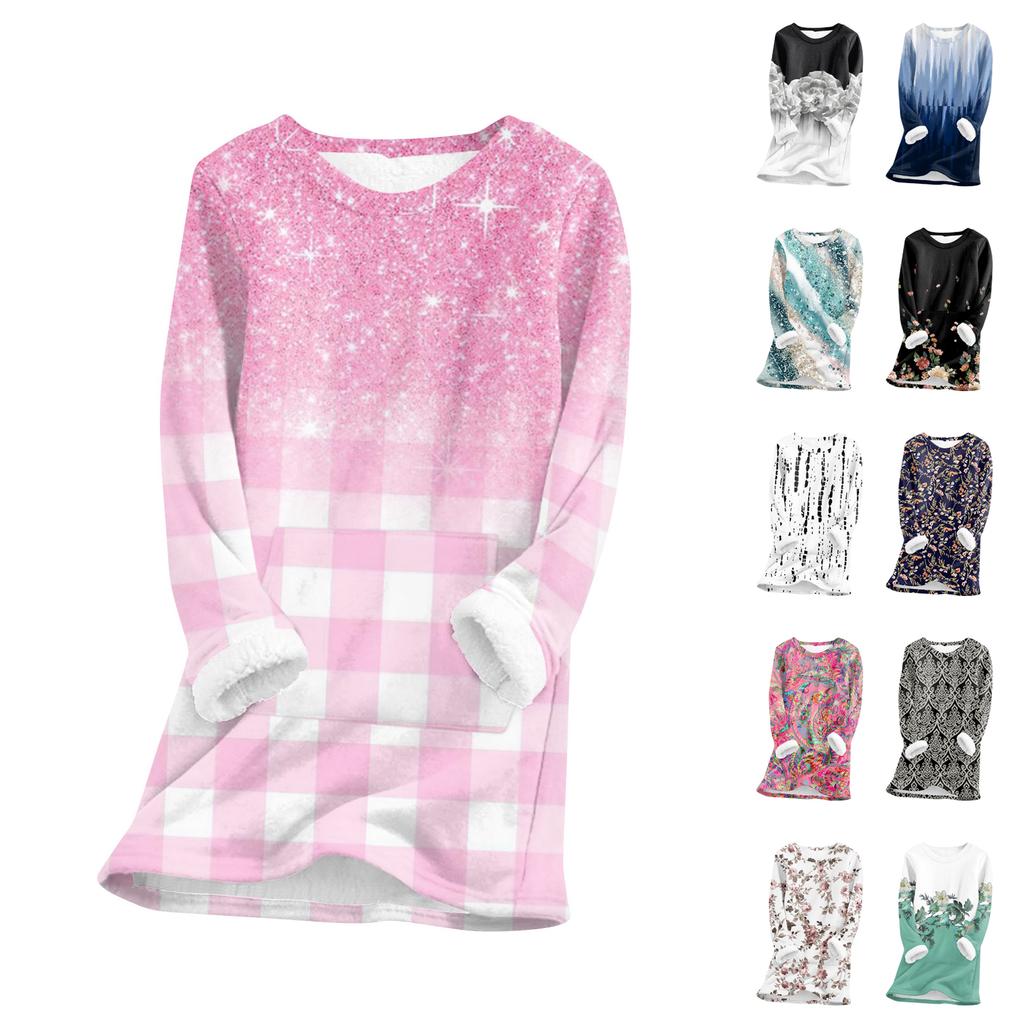 Women's Fashionable Printed Round Neck Long Sleeved Plush Warm Pullover Top