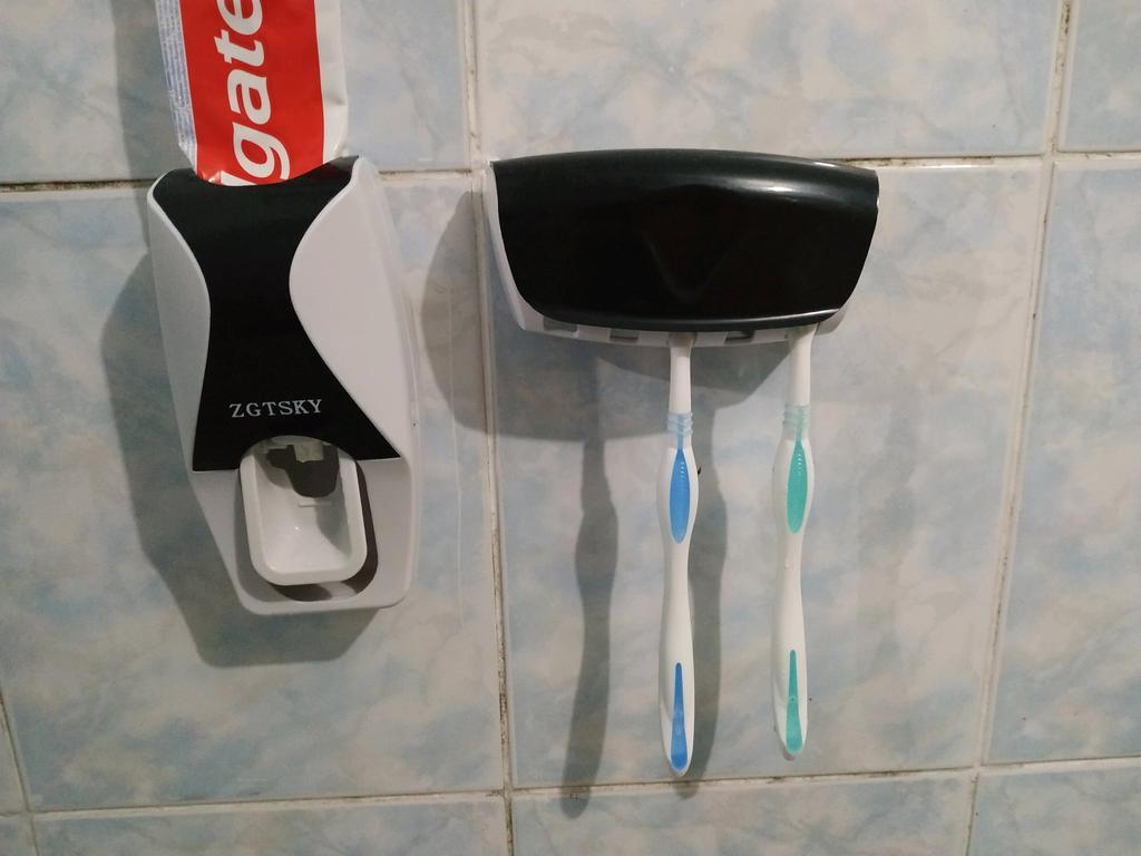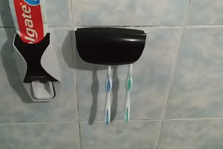 Baderom Lazy Veggmontert tannbørsteholder Automatisk tannkremdispensersett