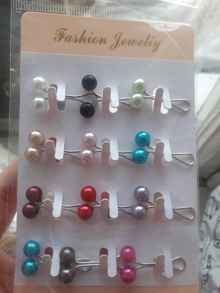 12 stk/sett Flerfarget hodesjal Perlestifter Klipsstifter Hijabskjerfklemmer Muslimsk arabisk sjal Islamsk tilbehør