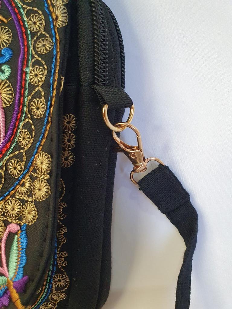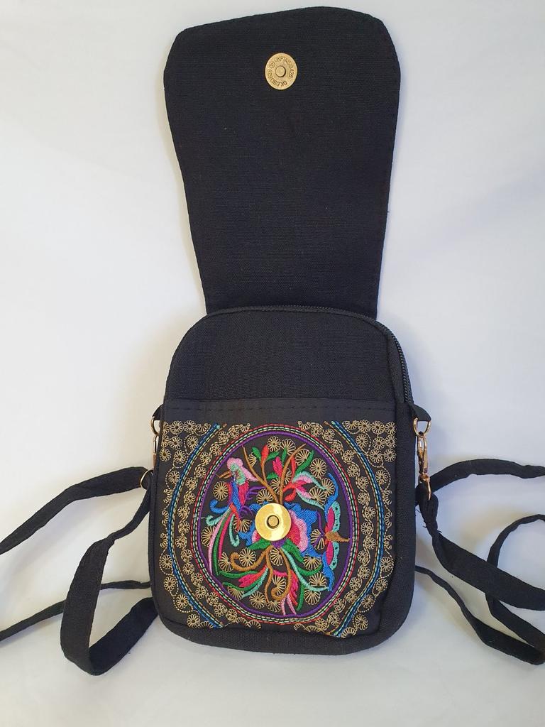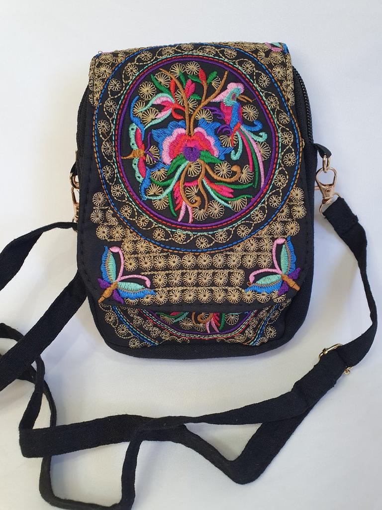 Reisetelefonveske National Canvas Skulder Liten Vintage Boho Etnisk Broderi Veske for Kvinner Reisepose Floral