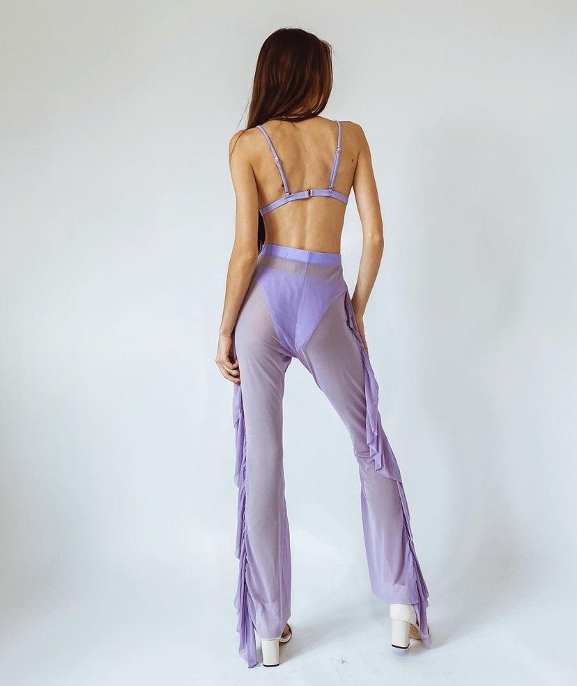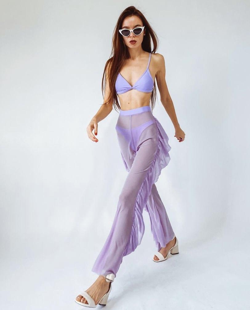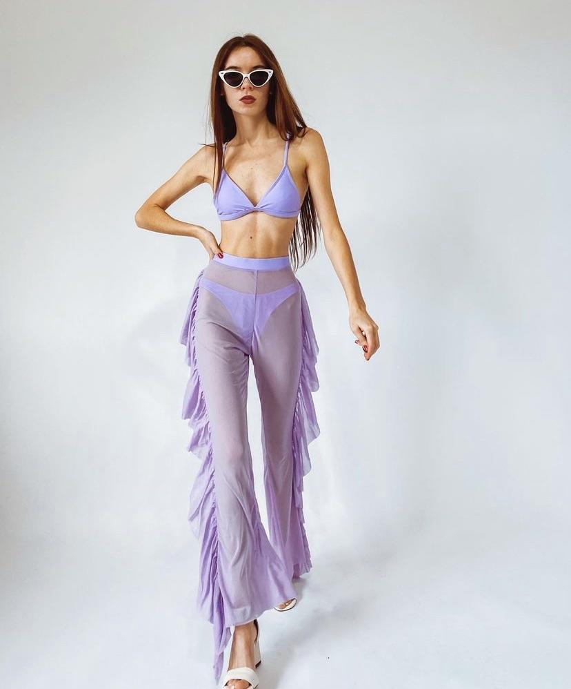 Badedrakt Dame Halter Neck Sexy Delt Tredelt Set Mesh Ensfargede Bukser Bikinidresser