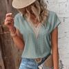 Casual Elegant Lace Shirts Fashion Summer Short Sleeve T-shirt Woman Tops Hollow V-neck Blouse Women Solid Color Blusas 25814