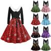 Fashion Women's Christmas Patchwork V-hals Langermet kjole