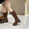 Meotina Damer Knehøye Lange Støvletter Rund Tå Blokkhæl Glidelås Spenne Gogo Støvlett Damer Motesko Høst Vinter Brun 43