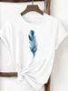 (Asian Size) Women Print Feather Lovely Style Cute Trend 90s Lady Tee Top Clothing Casual Short Sleeve Fashion Tshirt Female Graphic T-shirt