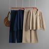 Høst Vinter V-hals Ensfarge Ny Lazy Wind Strikket Brede Ben Bukser Dress Dame Temperament Todelt sett