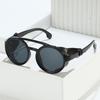 Vintage Steampunk Solbriller Menn Runde Solbriller Kvinner Retro Lær Briller Klassisk Designer Punk Nagle Wrap Briller