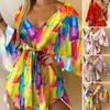 Ved å bruke asymmetrisk fald, knyte foran, tropisk trykk og uregelmessig flaggermus-ermdesign, kan minikjole for kvinner gi deg et snev av friskt og naturlig.