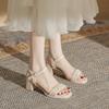 Summer Fashion New Casual Simple Thick Heel Women's Sandals Square Toe Comfortable Solid Color Square Toe High Heels NO:6618
