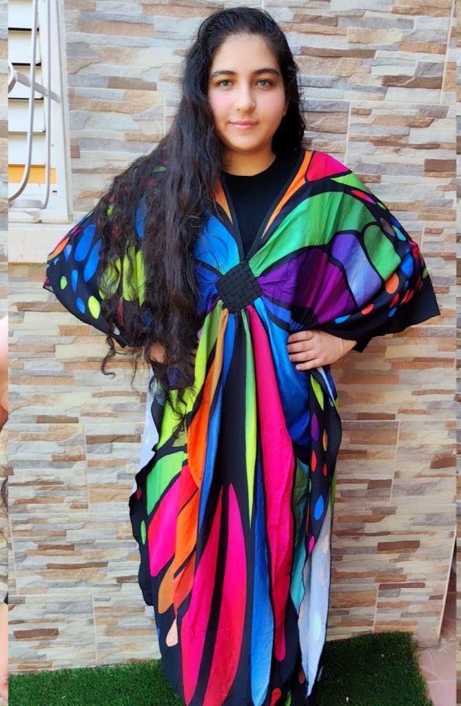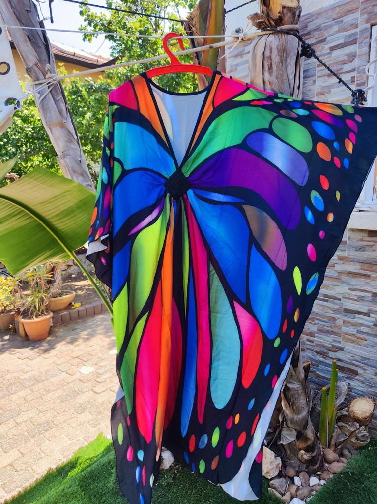 *Kontrasterende sommerfugltrykk kjole for kvinner – Løs passform med flaggermusermer* ✨Kjole i moderne avslappet stil, med en vid og komfortabel passform som passer alle kroppsfasonger. ✨Det moderne kontrasttrykket tilfører utseendet tilstedeværelse, og A-linjesilhuetten kombinert med V-utringningen skaper et feminint, flytende og elegant utseende. ✨Spesielt egnet for sommeren, ferier eller hverdagsbruk med en annerledes designmessig touch. *Hoveddetaljer:* - Bred flaggermuserm - Løs og behagelig passform - Åpen V-utringning - Lukking på siden for maksimal komfort - 100% polyesterstoff – lett og pustende - En størrelse – bryst: 220 cm, midje: 160 cm, lengde: 133 cm *Pleieinstruksjoner:* Kun renseri | Må ikke blekes | Må ikke tørketromles | Stryk lett (opptil 110°C)