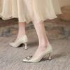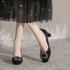 Square Toe Stiletto Rhinestone Square Buckle Shoes Women's Korean-Style Shallow Mouth Silk and Satin Shoes Solid Color Commute High Heels