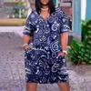 Kvinners uformelle stor V-hals kortermet trykt lomme løs kjole