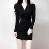 Sexy solid minikjole med høy krage Snøring Rynket Elegant Langermet Bodycon-kjoler Evening Party Club Causal-kjole