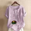 Women's Fashion Flower Prined Short Sleeve T-shirt Loose Cotton Shirt Casual Loose Summer Blouse Tops Plus Size