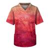 Plussstørrelse Halloween-trykte skrubb arbeidsskjorter for menn med kryss V-hals, korte ermer, morsomme t-skjorter, arbeidsklær med lommer