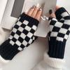 Outdoor Warm Driving Houndstooth Stripe Adult Winter And Autumn Half Fingers Gloves Knitting Korean Style Mittens Women Gloves